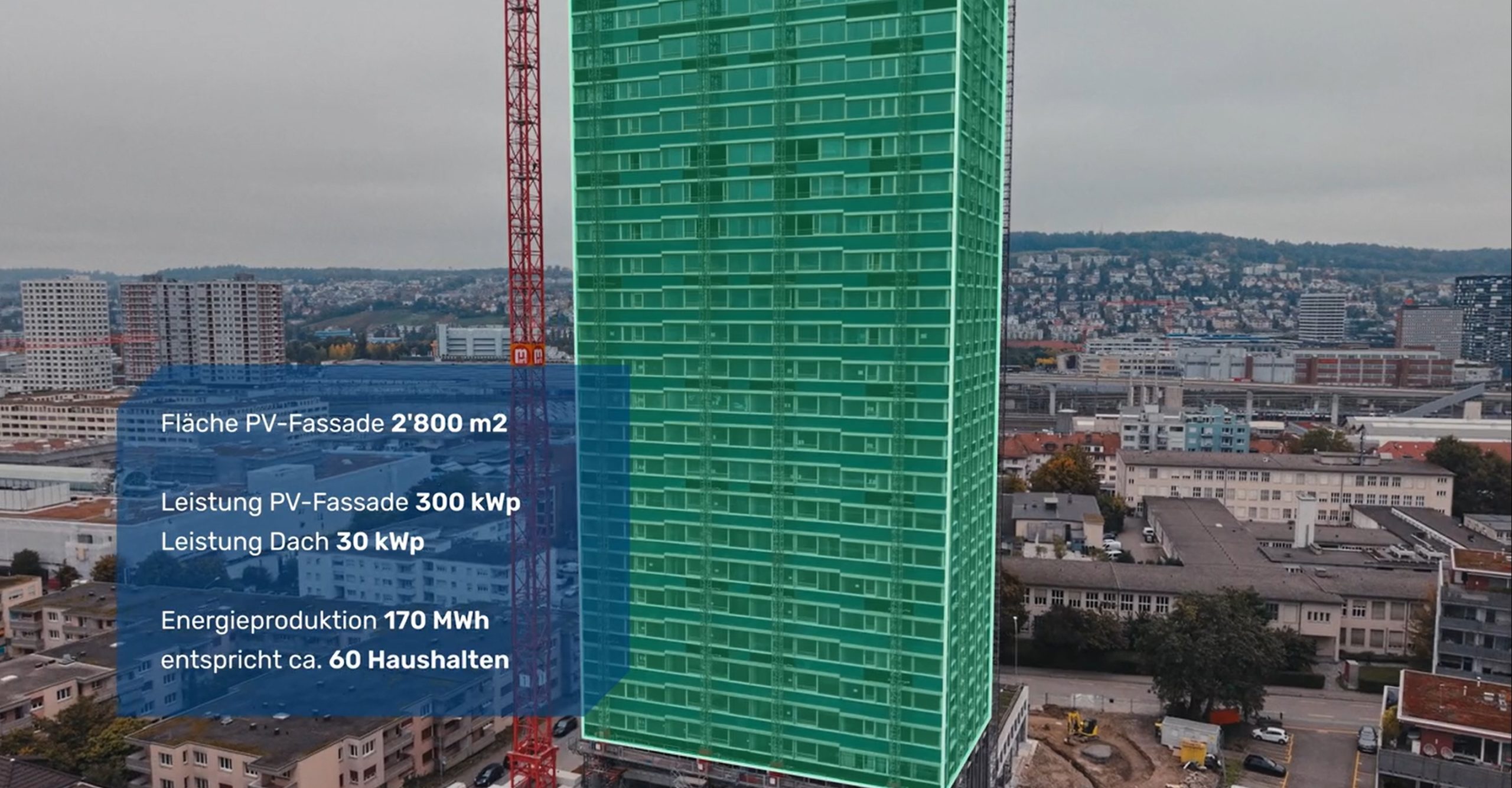 Das Hochhaus ALTO an der Freihofstrasse Altstetten (Höhe 80 m) wird mit einer farbigen Solarfassade versehen. Plan-E ist verantwortlich für die gesamte Fachplanung der Photovoltaikanlage vom Vorprojekt bis zur Abnahme.